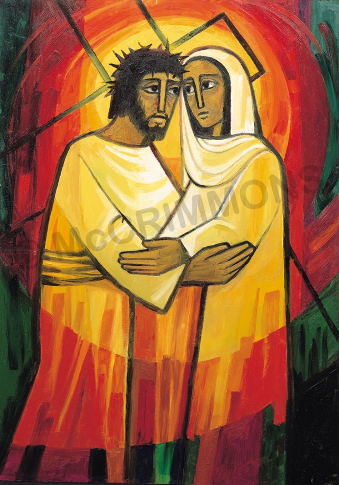 Sixteen Stations of the Cross. These inspired illustrations of Christ’s journey to the cross and beyond are presented to us through colour and symbol.